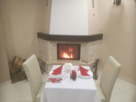 stylowy kominek zapewnia miłą atmosferę i przyjemne ciepło. |